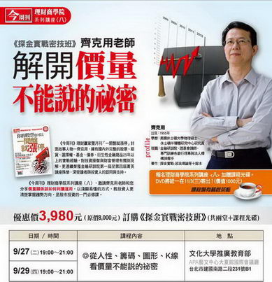今周刊理財商學院系列講座:探金實戰密技班解開量價不能說的秘密(上下) 繁體中文版(DVD一片裝)