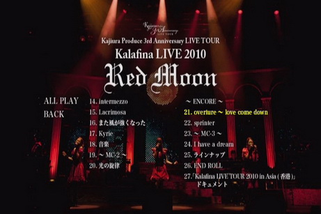 「Kajiura Produce 3rd Anniversary LIVE TOUR - Kalafina LIVE 2010 "Red Moon"」。