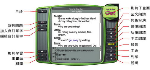 讀: 課文對白完整呈現 ,單句、整句反覆朗讀;英、中隨切隨換。